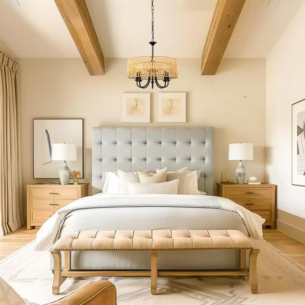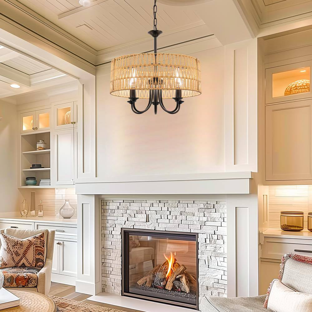 Transform your dining room into a cozy and stylish haven with the 5-Light Modern Farmhouse Brown Round Rattan Pendant Rattan Drum Chandelier. This exquisite chandelier combines modern farmhouse aesthetics with natural elements, featuring a beautifully woven rattan shade in a warm brown finish. Its round drum design provides a stunning focal point, adding a touch of rustic charm and contemporary elegance to your space.