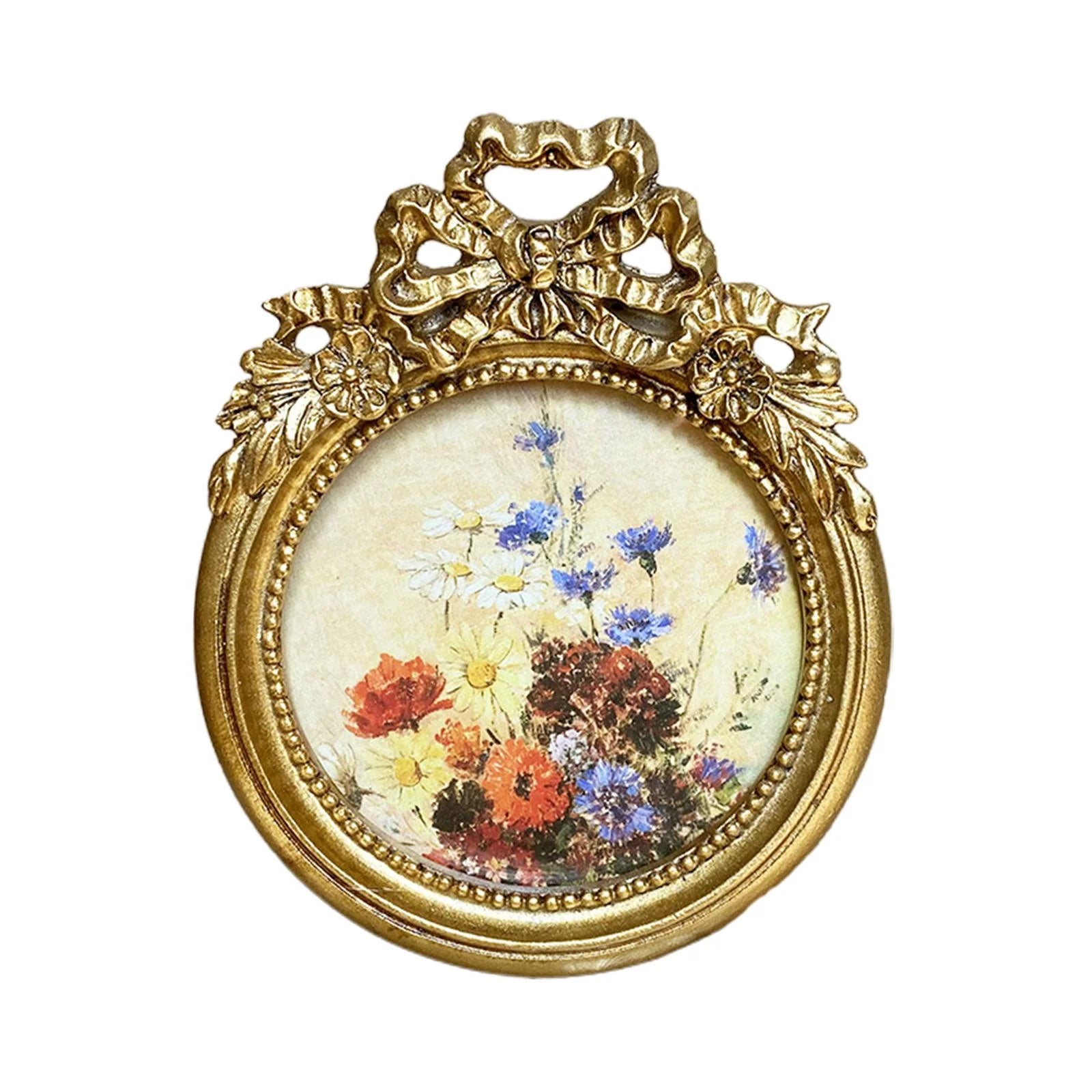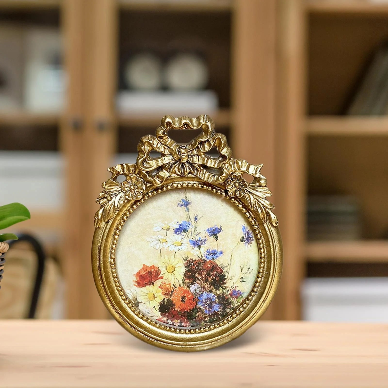 Antique Photo Frame round Small Picture Display Frame for Bedroom Home Decor