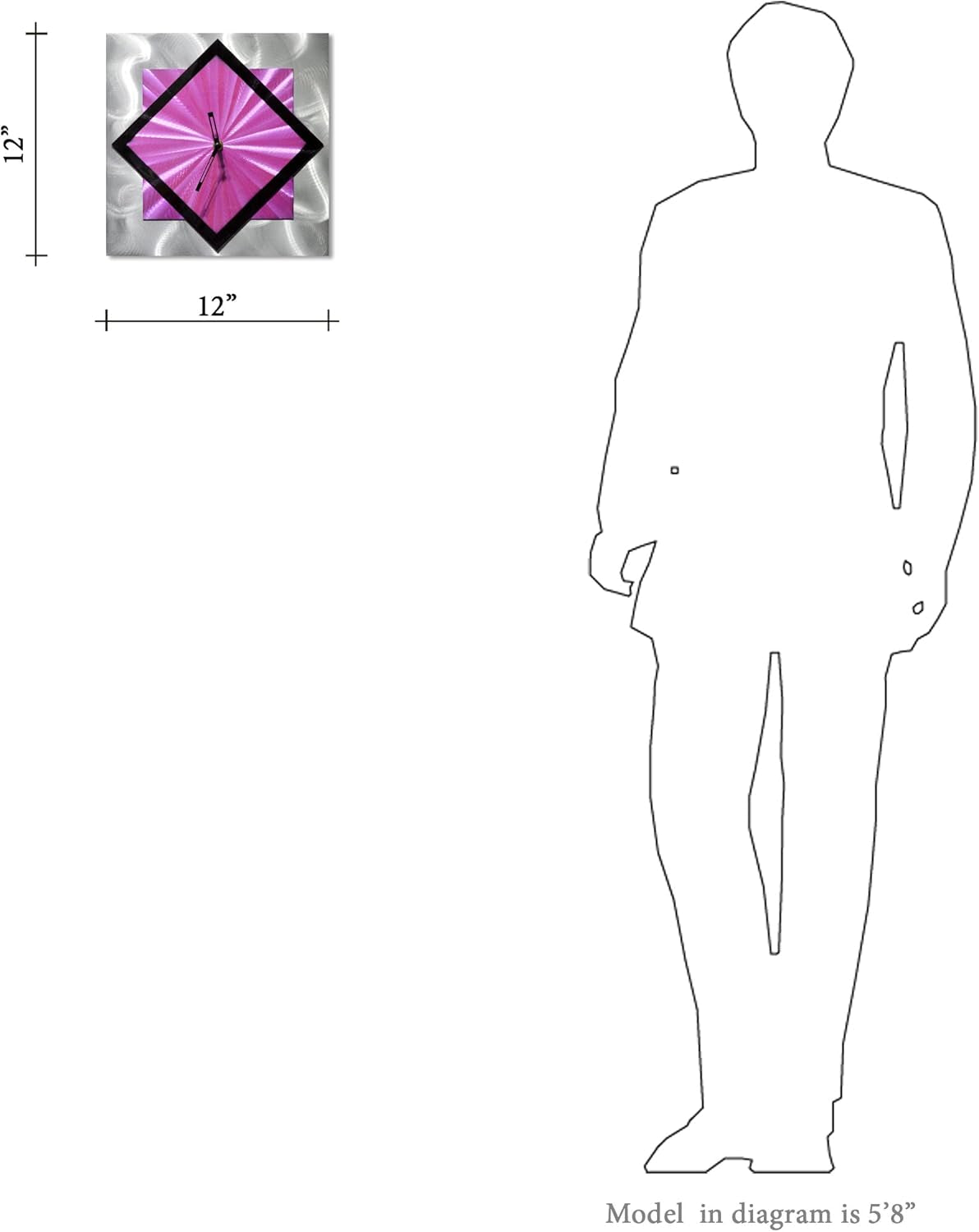 Diagonal Clock Wall Decor - Purple Functioning Clock Is the Perfect Outdoor Decoration - Abstract Modern Art of 12" X 12"