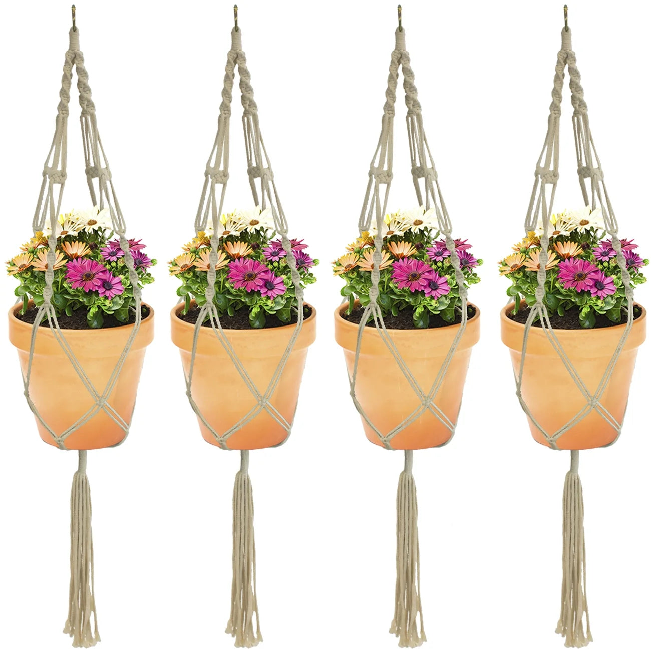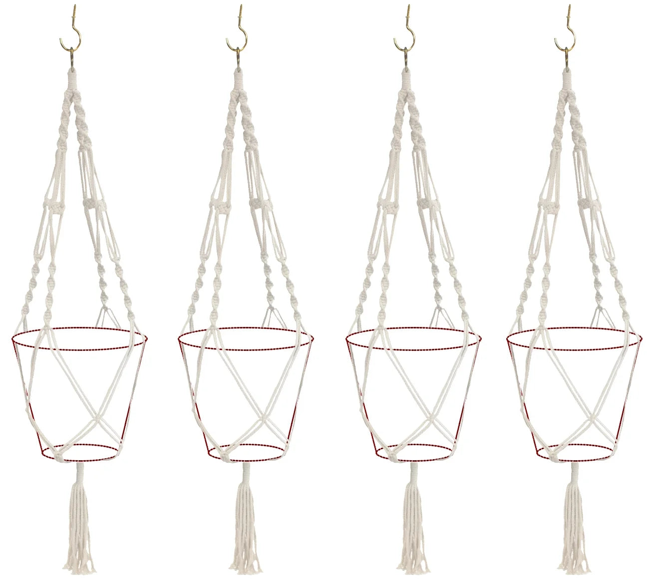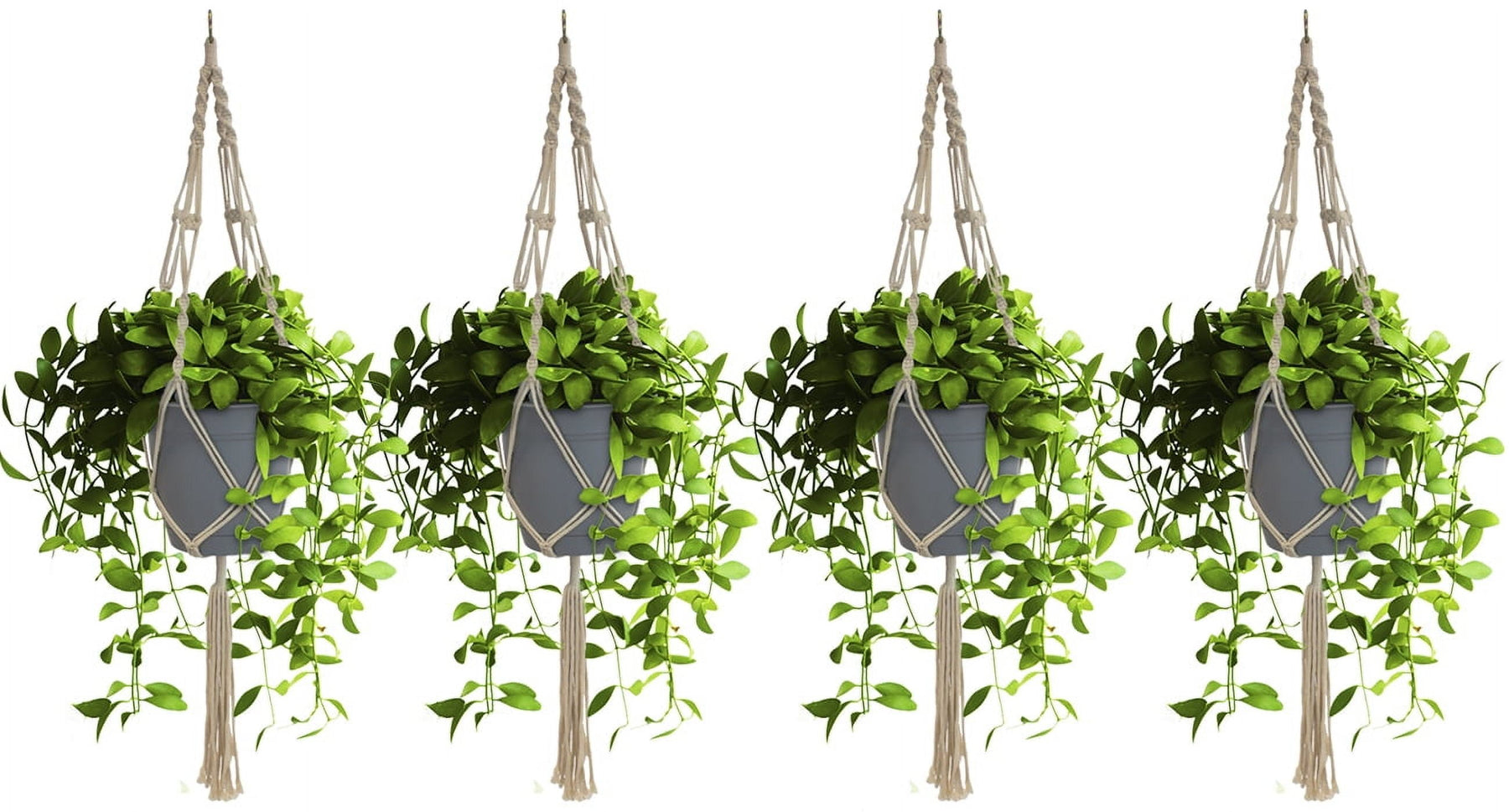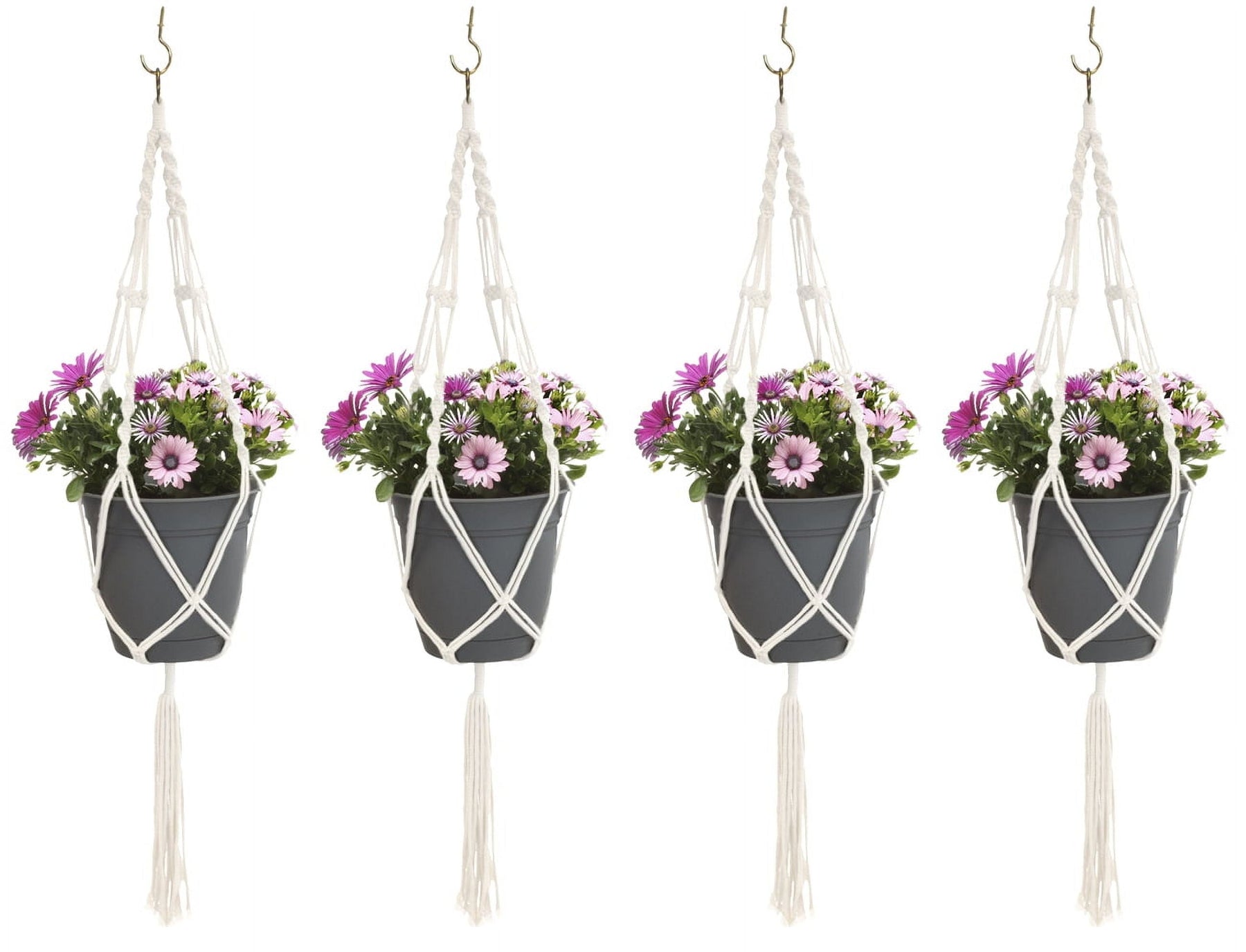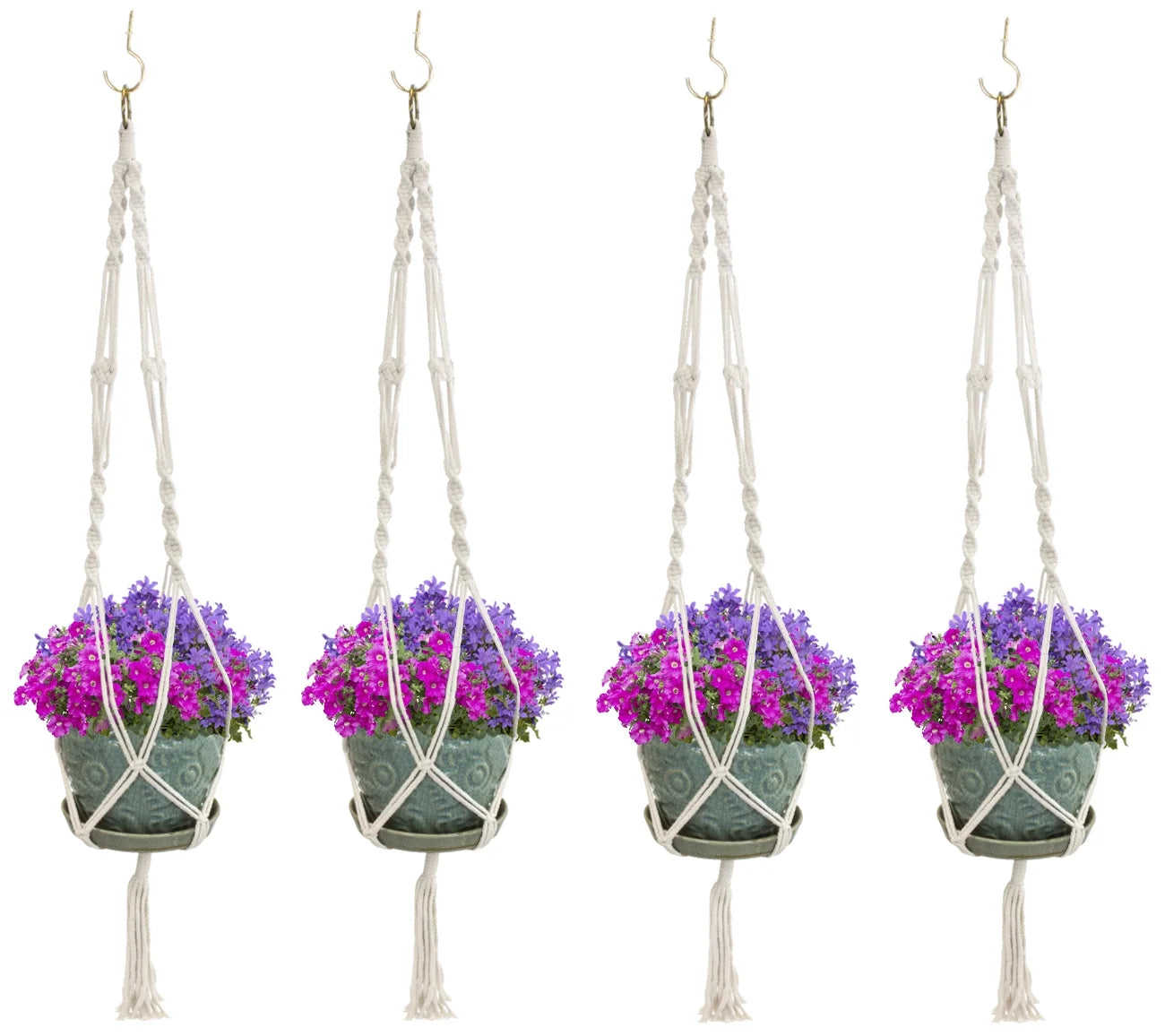 - MACRAMÉ PLANT HANGERS (4-PACK) —Beautifully suspend potted plants and flowers with bohemian inspired hanging plant holders — Perfect for home and garden lovers